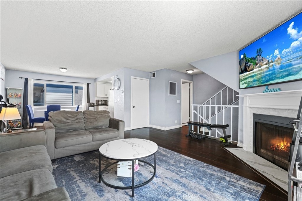 Welcome home to this beautifully refreshed 2-bedroom, 3-bathroom condo tucked into the desirable foothills of Sylmar, where scenic mountain views and natural light set the tone for everyday living. Large windows throughout the home invite in sunshine and frame the picturesque surroundings, creating a bright and welcoming atmosphere. Inside, you’ll find thoughtful updates including new flooring throughout and a modern kitchen designed to impress, featuring beautiful countertops, sleek cabinetry, and a stylish backsplash. The living space is enhanced by a fireplace with a contemporary mantel, adding warmth and charm. All three bathrooms have been tastefully updated with new vanities and countertops, offering a fresh, functional, and cohesive look. Comfort and efficiency are elevated with a newer A/C system equipped with smart Nest control. An added bonus is the upgraded garage with 220-volt electrical, ideal for electric vehicle charging or additional versatility. Enjoy easy access to nearby parks, hiking trails, and major freeways, making commuting and outdoor adventures equally convenient. This light-filled, move-in-ready condo blends comfort, style, and location—an opportunity you won’t want to miss.