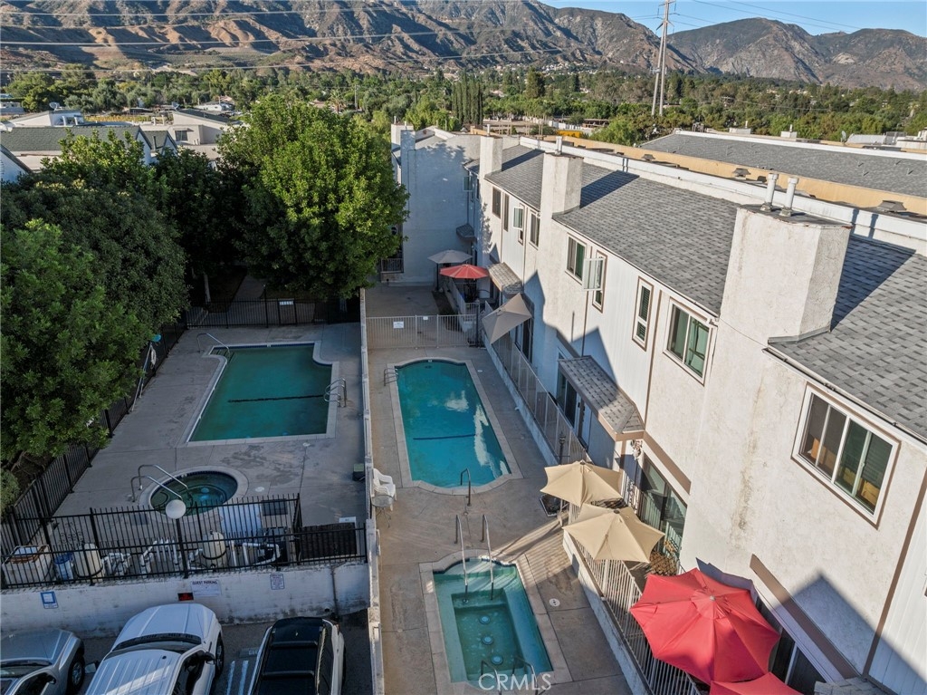 Welcome to this move-in ready townhome nestled in a peaceful gated complex in Sylmar. This bright and airy 2-bedroom, 3-bathroom unit offers a perfect blend of comfort and style, with recent upgrades including a newer roof, newly installed plumbing pipes, and a tankless water heater for modern efficiency. Step inside to soaring ceilings, recessed lighting, and a cozy fireplace that anchors the spacious living area. A charming loft adds extra versatility, ideal for a home office, reading nook, or guest space. Original hardwood floors and an abundance of natural light create a warm and inviting atmosphere throughout. Enjoy morning coffee or evening tea from your private front patio, complete with sweeping views of the nearby foothills. The well-maintained complex also features resort style amenities including a sparkling pool and relaxing Jacuzzi spa. Located just minutes from major freeways, shopping, and dining, this home offers both convenience and tranquility. Come experience the comfort and charm of your next home!