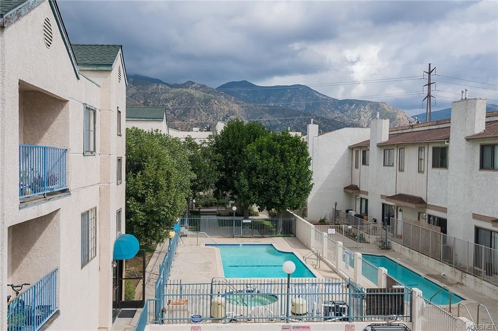 Large and well-maintained townhouse in the foothills of Sylmar! You’ll be impressed as soon as you enter this spacious home, where wood laminate floors welcome you to a large living area with a warm fireplace, perfect for entertaining family and friends. Next door, a formal dining room leads to a well-equipped alley kitchen with tons of storage, counter space, and dishwasher. Upstairs, in the living quarters, two expansive master suites await you. Each has its own private en suite bathrooms and sliding wall closets. Bedrooms also share a balcony, from where you can enjoy the mountain views. Additional amenities include a sparkling community pool and spa, 24 hours monitored security, two tandem parking spots, a common laundry area, central air and heat, and much more. Don’t miss out on this incredible townhouse at a great price!