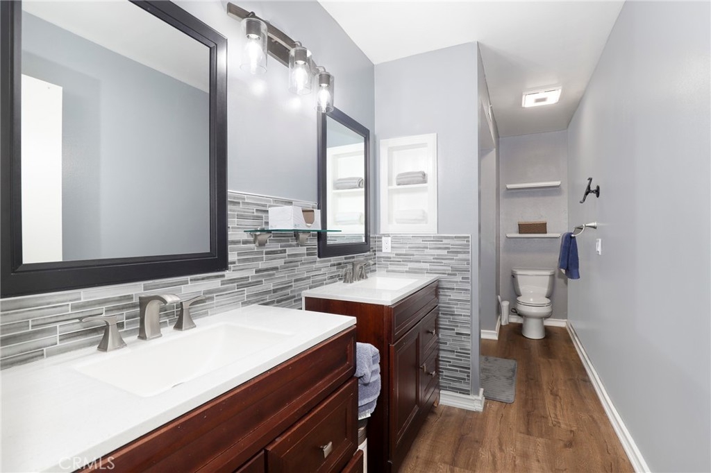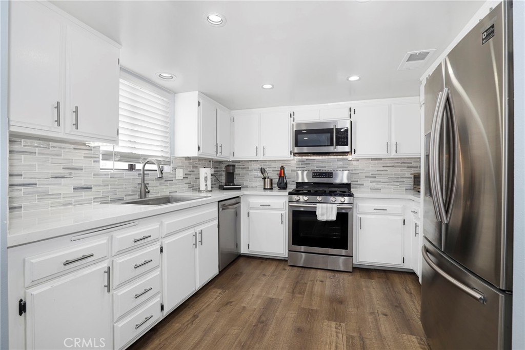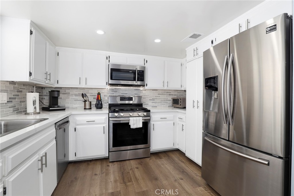 Welcome to this stunning 2-bedroom, 2.5-bathroom townhouse in the heart of Sylmar. Thoughtfully remodeled, this home offers modern comfort and stylish finishes throughout. Venture into the spacious living room, where high ceilings create an airy and inviting atmosphere. The large primary suite also boasts soaring ceilings, providing a sense of openness and tranquility. The kitchen and all bathrooms have been tastefully updated, featuring sleek finishes and contemporary design. Wood-like flooring flows seamlessly throughout the home, adding warmth and elegance. Convenience is key with an attached two-car garage offering direct access, as well as an in-unit laundry area conveniently located near the kitchen. This beautifully upgraded townhome is a perfect blend of style and functionality—don’t miss the opportunity to make it yours!