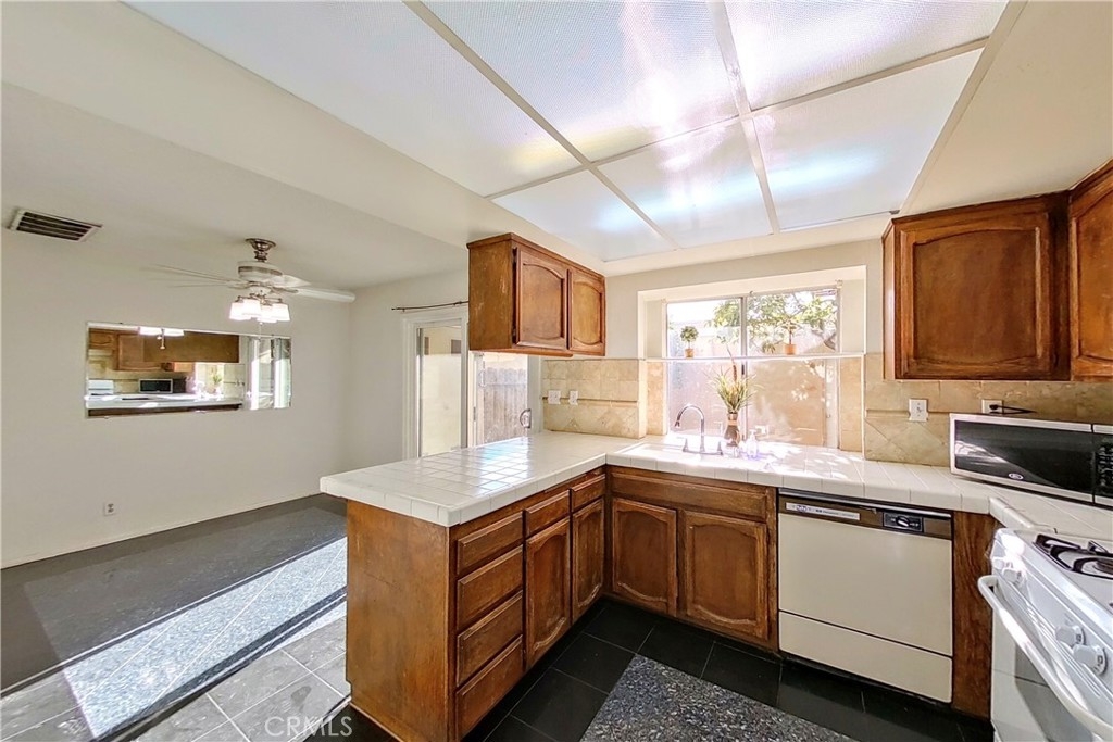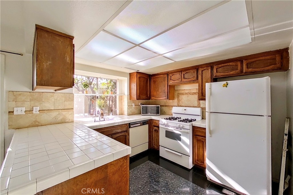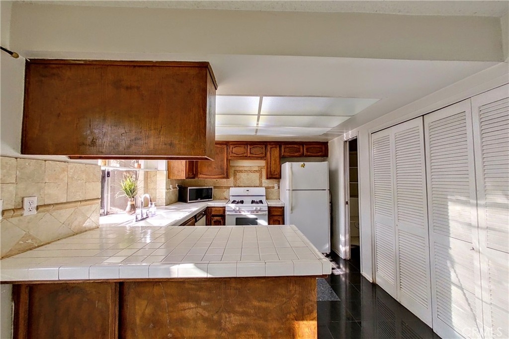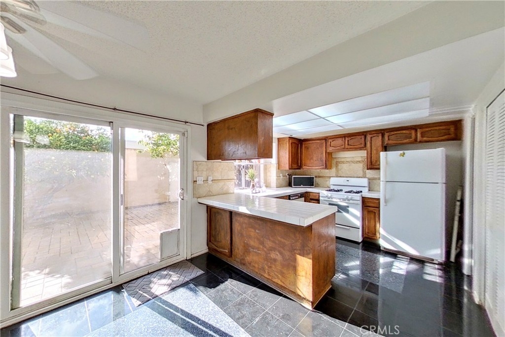 Well-proportioned two story townhome. 3-bedroom, 2.5 bathroom over 1,300 sq.ft. located in a secured gated complex with community pool, spa, and easy access to the most major freeways including the 210, 118, 5 & 405 - a commuter’s dream! This comfortable unit features central air & heat, a cozy gas fireplace in the living room, dining area, large kitchen, in unit laundry with an extra-large patio with some mature orange & guava trees with direct access to the 2-car detached garage. Front Street unit with easy access to street and visitor parking. Units like this don’t come on the market often, see it today! Needs some light cosmetic touch ups but with some updating, this could be the home of your dreams.