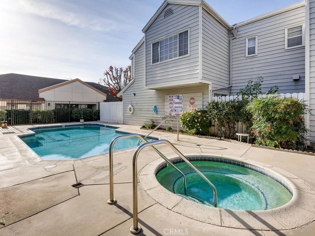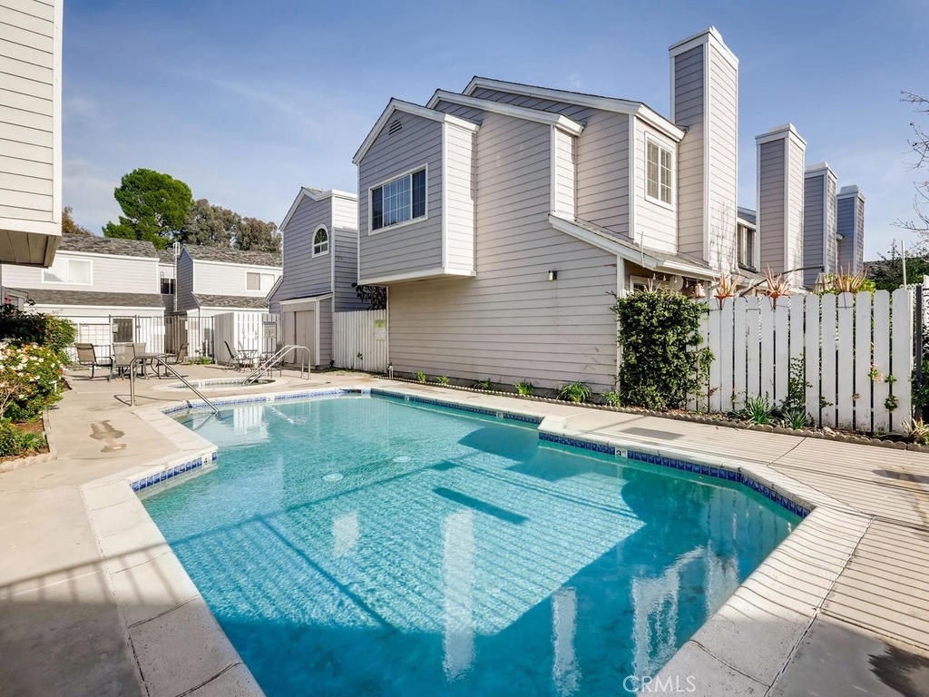 Welcome to Pensfield Place a Cape Cod 2-story townhome with a private 2-car garage with a wrap-around interior atrium that is perfect for your quaint family meals or just a place for your pet to hang-out while you are working. This townhome offers 2 large master suites with their own bathrooms. The front enclosed patio to perfect for your Buyer with a "green thumb", your Buyer can make this open air space their own. Front door leads you into a step-down living room with a traditional fireplace, laminated flooring, crown & base molding, recess lighting & sliding glass doors with custom shutters leading the way to your private enclosed patio area. Adjacent dining area offers french doors to the open air atrium. Updated kitchen features laminate counter tops, tile back-splash, built-in appliances, recess lighting plus a large window allowing for easy serving of your meal in the atrium. Charming updated 1/2 bathroom downstairs offers wainscoting, modern vanity & fixtures. Staircase takes you to the upper level offering the 1st master bedroom with vaulted ceilings, carpeting, wall to wall closet storage and a private full bathroom with tub/shower feature. The secondary master bedroom also features a coved high ceiling, carpeting, walk-in closet plus a private 3/4 bathroom with a walk-in shower and window overlooking the atrium area. Community is gated and offers a common pool & spa area perfect for relaxation and taking in the summer months. Freeway close for your commuter Buyers!