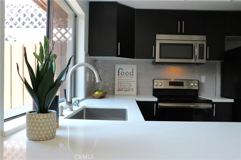 FHA APPROVED COMPLEX! Remodeled townhome with upgrades galore. Gated complex with pool and lush landscaping. Three bedrooms and 2.5 baths with an open floor plan. Beautiful living room with fireplace. New flooring in living room and dining area. Updated modern kitchen with quartz counter tops and stainless steel appliances. Amazing updated bathrooms with custom glass work. Huge private patio with a private two car garage. Will go fast!