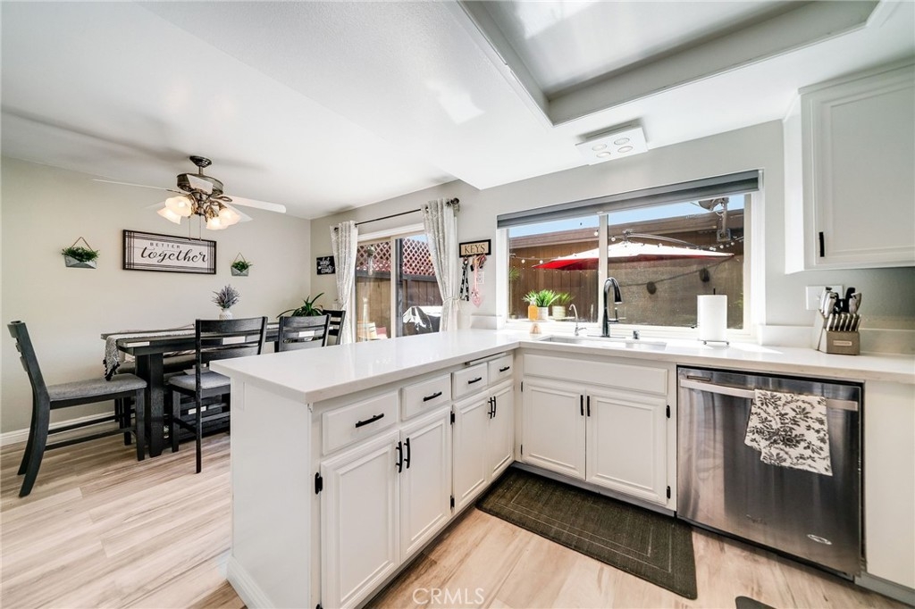 This is your chance to own a beautiful 3-bedroom 3-bathroom townhome nestled away in a quiet community right off the 210 freeway. You will love the open floor plan which offers plenty of natural light and vinyl wood flooring. The living room features a fireplace, recessed lighting, and plantation shutters. The half bath is located off the hallway for guests. The Dining Area has a ceiling fan and sliding door that leads to a quaint back patio that has direct access to a detached two-car garage. This spacious kitchen is perfect for entertaining and cooking. It includes tile countertops, stainless steel appliances, a pantry, and plenty of cabinet space. The laundry room is conveniently located off the kitchen, equipped with storage shelves, a new water heater, and room for a side-by-side washer and dryer. Upstairs features 3 bedrooms with recently updated carpeting and ceiling fans. The 3 bathrooms have been recently updated and fitted with tile flooring. The master suite comes with three closets, a private bath, and an enclosed walk-in shower. The unit is situated in the rear interior of this beautifully landscaped and well-maintained complex. Move-in ready!