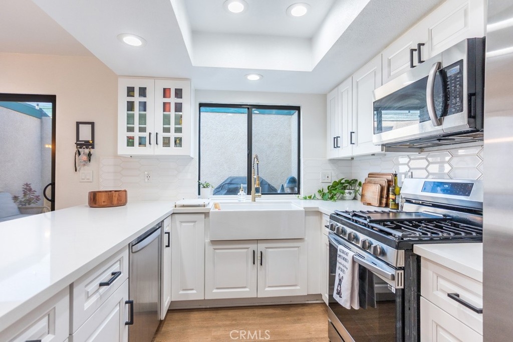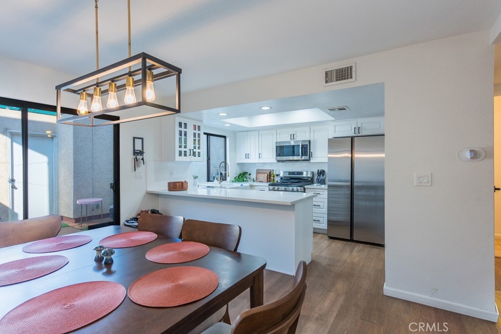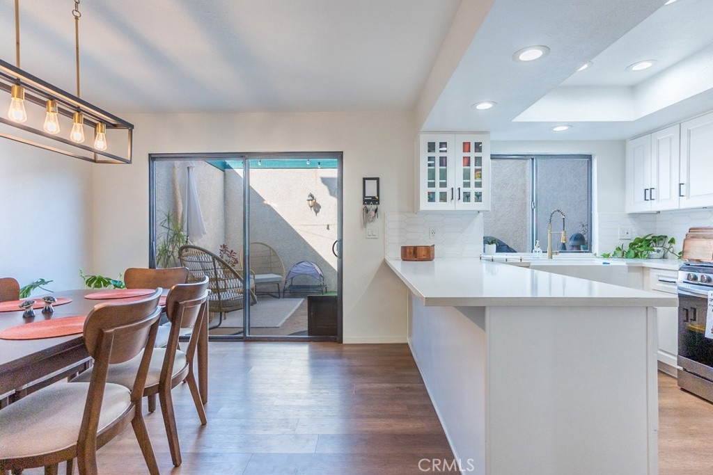 The best townhome in Glenoaks Gardens features a two-car garage, a private courtyard, and serene garden views, all wrapped into a beautifully remodeled two-story design. Inside, natural light pours into the spacious living room, highlighted by upgraded flooring, a modern neutral palette, and oversized windows. The open flow leads to a sleek kitchen showcasing brand-new cabinetry, quartz countertops, a designer tile backsplash, and an oversized peninsula that doubles as a gathering hub for family and friends. Upstairs, the primary suite impresses with vaulted ceilings, dual closets, and a full en-suite with space for a dual vanity, while the junior suite across the hall offers its own en-suite bath with a shower/tub combo. A brand-new water heater adds peace of mind, complementing the stylish updates throughout. Step outside to enjoy green landscaping and a sparkling community pool, with quick access to the 210 freeway, shopping, dining, and everything Sylmar has to offer.